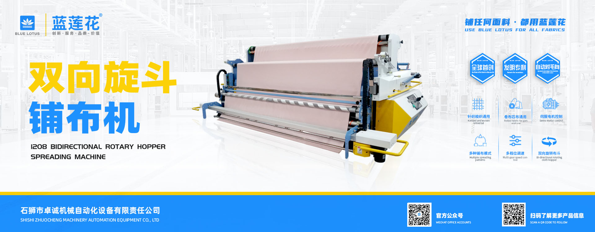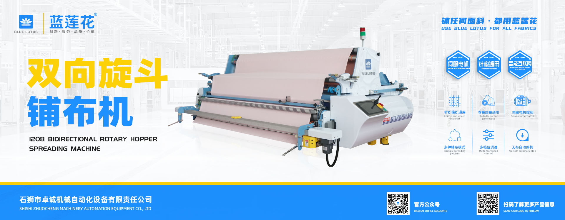 我司結(jié)合市場(chǎng)自主研發(fā)的藍(lán)蓮花品牌拉布機(jī)擁有多項(xiàng)自主專利技術(shù),機(jī)器以小巧多功能易操作低維護(hù)為特點(diǎn),為業(yè)界提供性價(jià)比機(jī)型; 藍(lán)蓮花品牌拉布機(jī)以實(shí)用質(zhì)優(yōu)為特點(diǎn)自投產(chǎn)以來(lái)便在國(guó)內(nèi)贏得市場(chǎng)廣泛認(rèn)可。